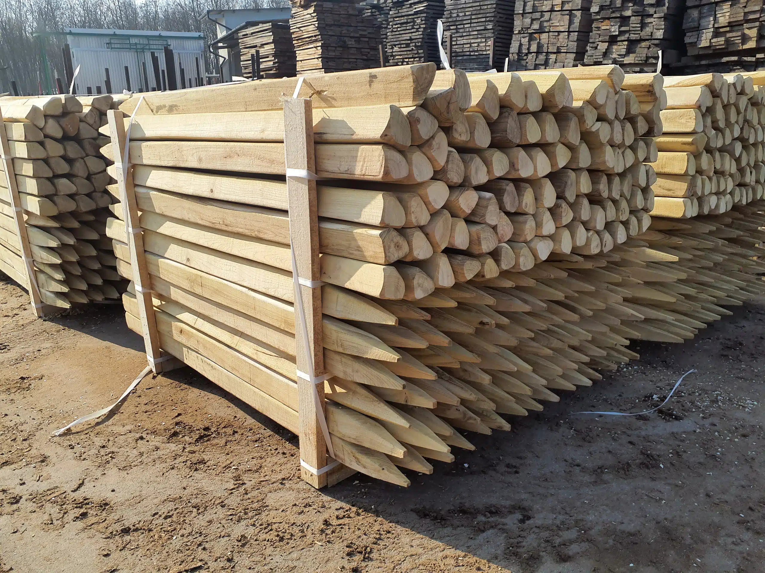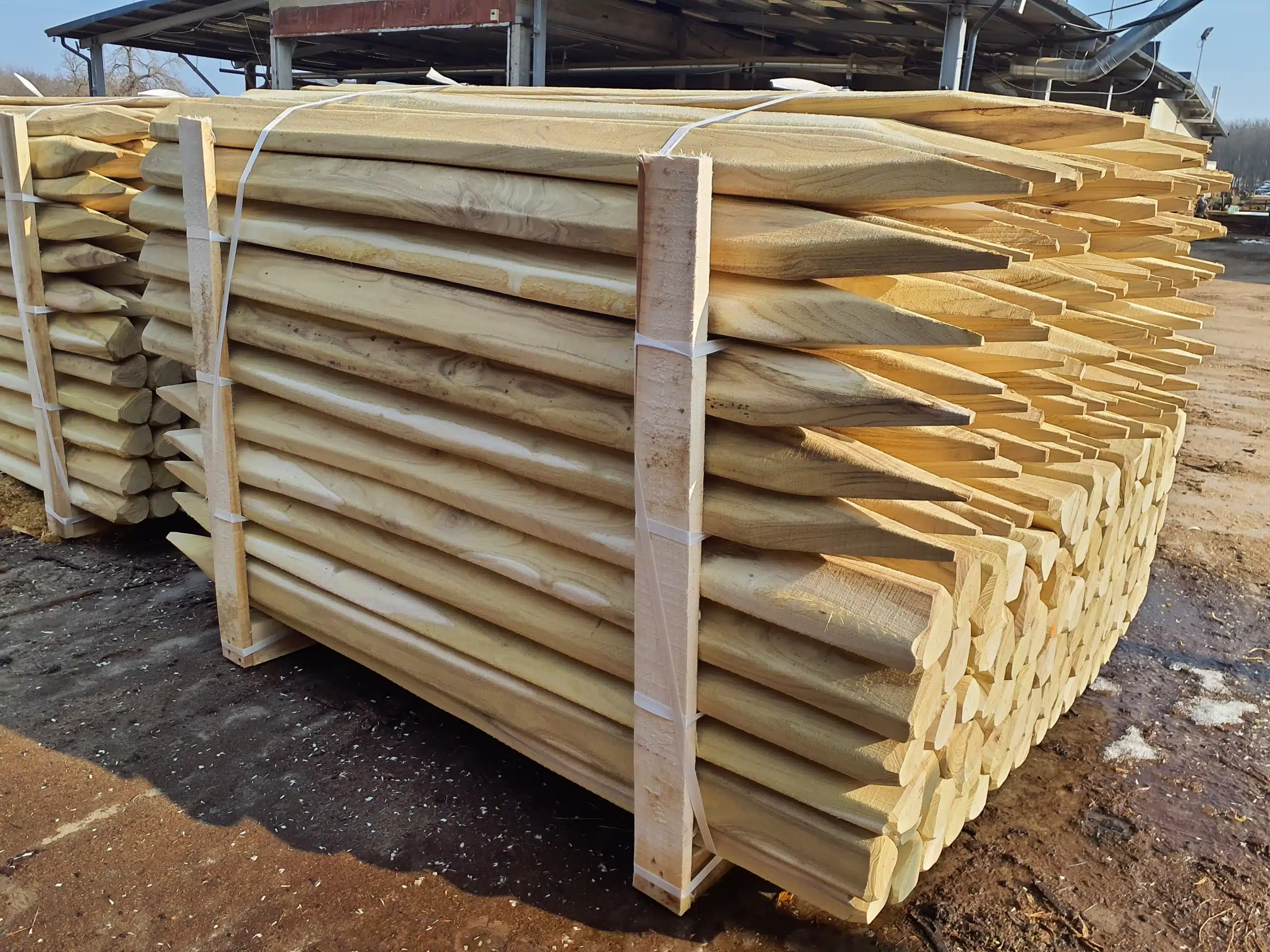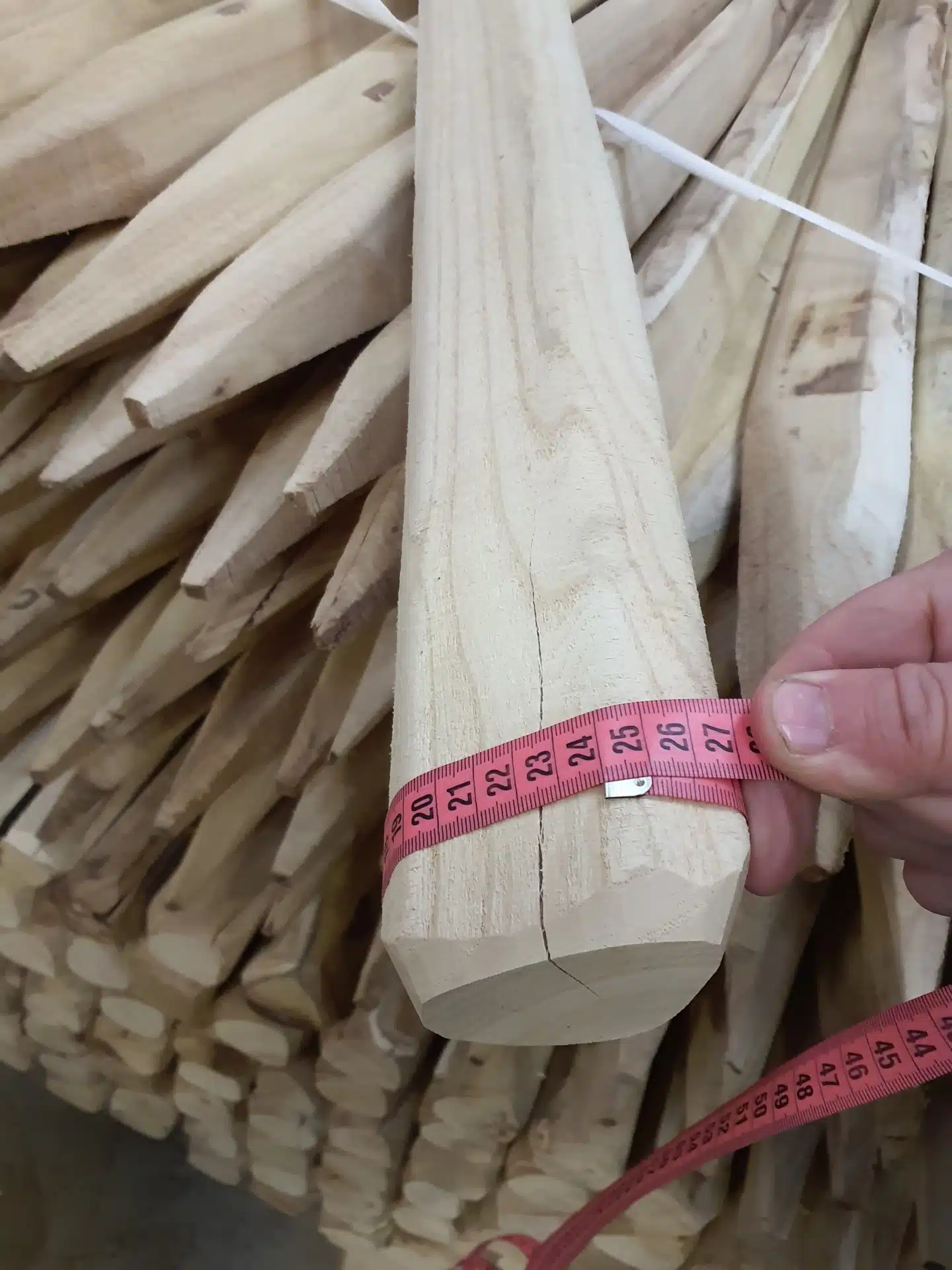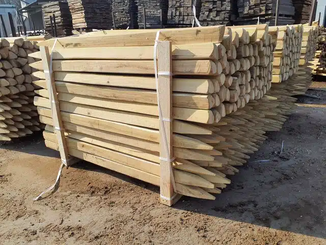 Le piquet en bois a été scié et son extrémité a été appointée sur 4 faces en version standard. Mais il peut être taillé autrement sur-mesure, par exemple en carré ou octogone, non appointé, avec des bords chanfreinés, taillé en cône, etc.